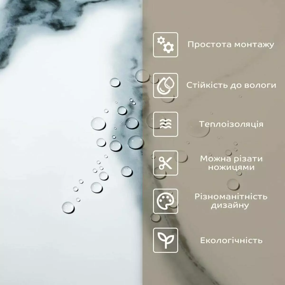 • 2. Стійкість до вологи: матеріал стійкий до впливу вологи та пари, а також до появи плісняви, що робить його придатним для використання у приміщеннях з високою вологістю, таких як ванни та кухні. Плитка підходить для створення фартуха кухні, можна клеїти біля плити на відстані не менше ніж 20-25 см;