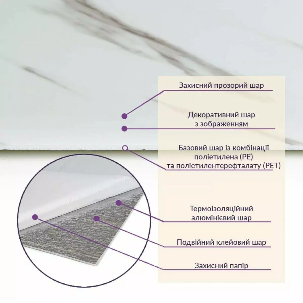 • 3. Ізоляція: плитка має звукову та теплоізоляцію завдяки наявності повітряних прошарків та додатковому алюмінієвому шару;