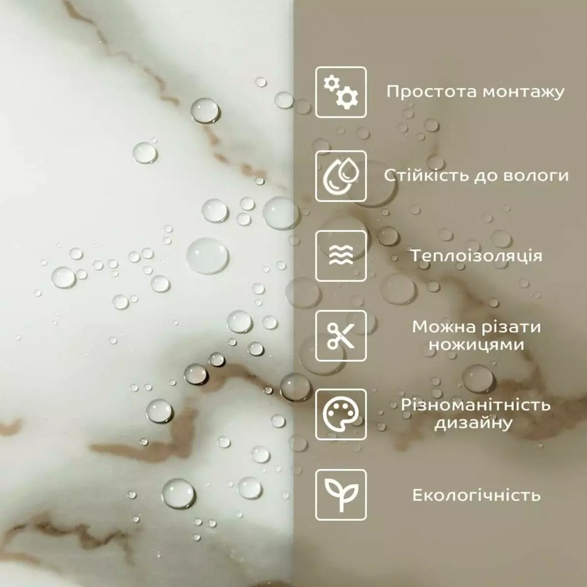 • 2. Стійкість до вологи: матеріал стійкий до впливу вологи та пари, а також до появи плісняви, що робить його придатним для використання у приміщеннях з високою вологістю, таких як ванни та кухні. Плитка підходить для створення фартуха кухні, можна клеїти біля плити на відстані не менше ніж 20-25 см;