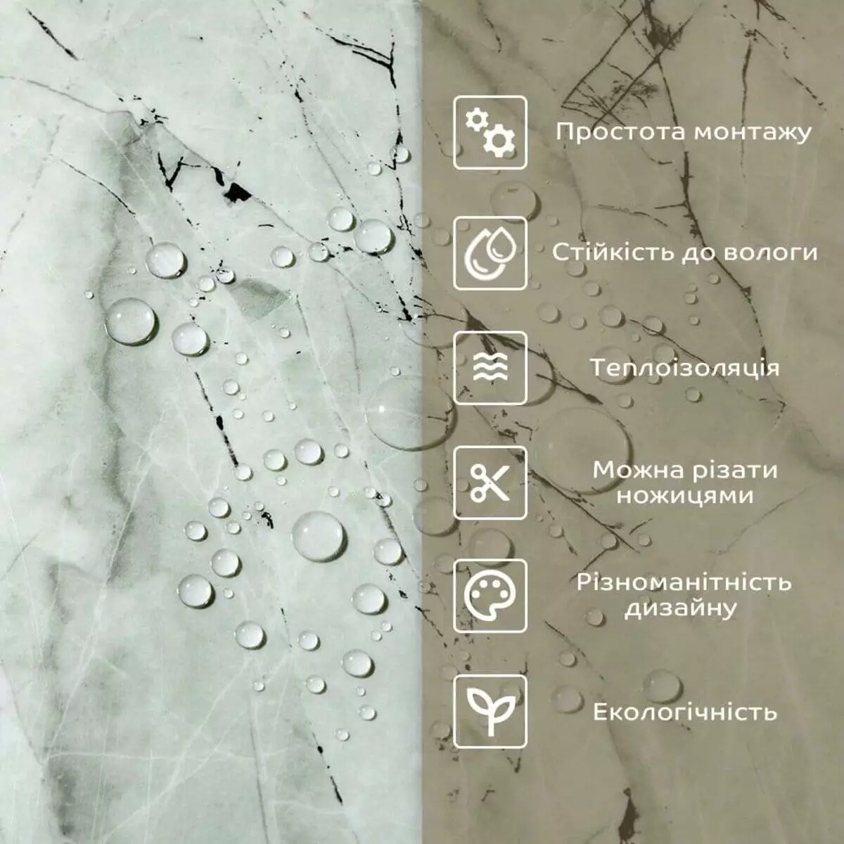 • 2. Стійкість до вологи: матеріал стійкий до впливу вологи та пари, а також до появи плісняви, що робить його придатним для використання у приміщеннях з високою вологістю, таких як ванни та кухні. Плитка підходить для створення фартуха кухні, можна клеїти біля плити на відстані не менше ніж 20-25 см;