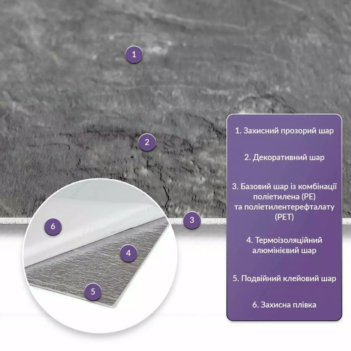 • 3. Ізоляція: плитка має звукову та теплоізоляцію завдяки наявності повітряних прошарків та додатковому алюмінієвому шару;