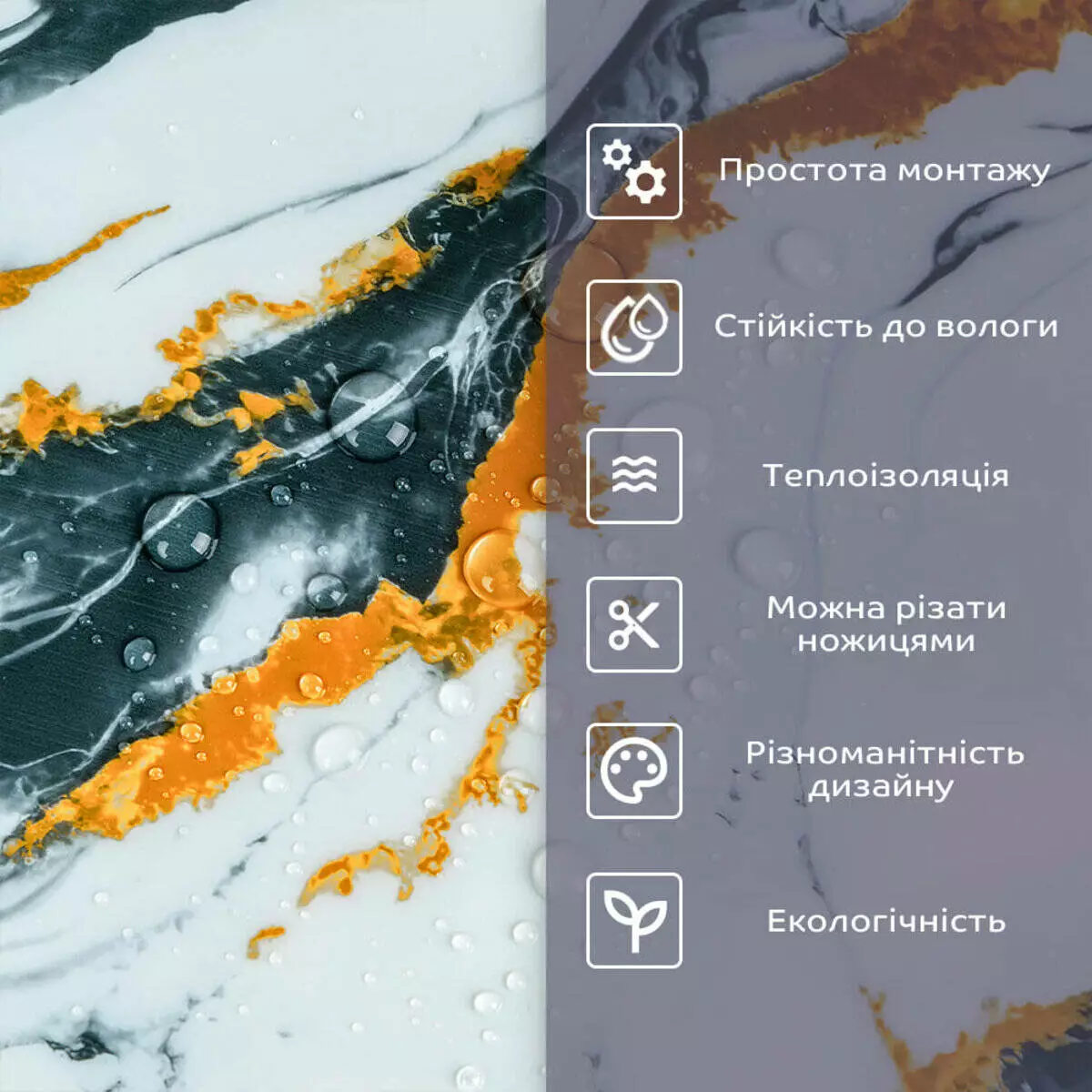 • 2. Стійкість до вологи: матеріал стійкий до впливу вологи та пари, а також до появи плісняви, що робить його придатним для використання у приміщеннях з високою вологістю, таких як ванни та кухні. Плитка підходить для створення фартуха кухні, можна клеїти біля плити на відстані не менше ніж 20-25 см;