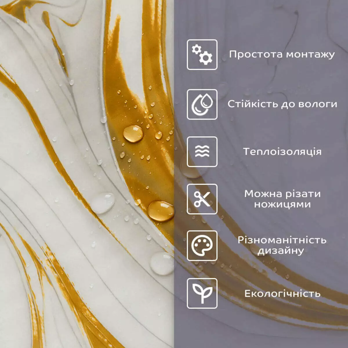 • 2. Стійкість до вологи: матеріал стійкий до впливу вологи та пари, а також до появи плісняви, що робить його придатним для використання у приміщеннях з високою вологістю, таких як ванни та кухні. Плитка підходить для створення фартуха кухні, можна клеїти біля плити на відстані не менше ніж 20-25 см;