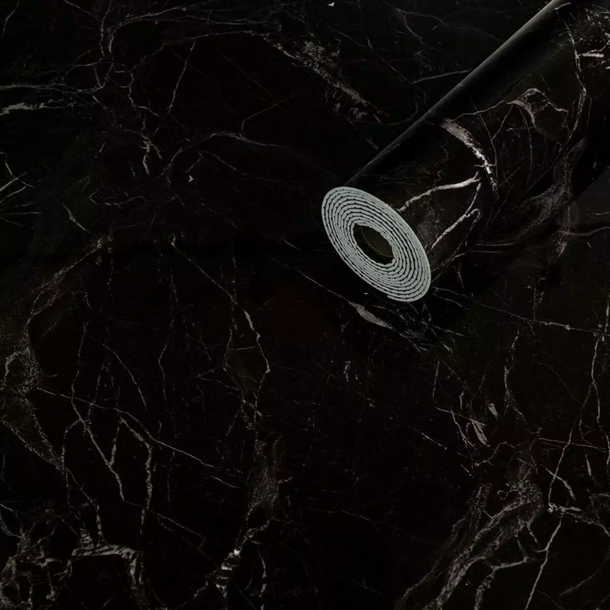 Самоклеюча вінілова плитка в рулоні 600х3000х2мм Чорний мармур Глянец SW-00001289