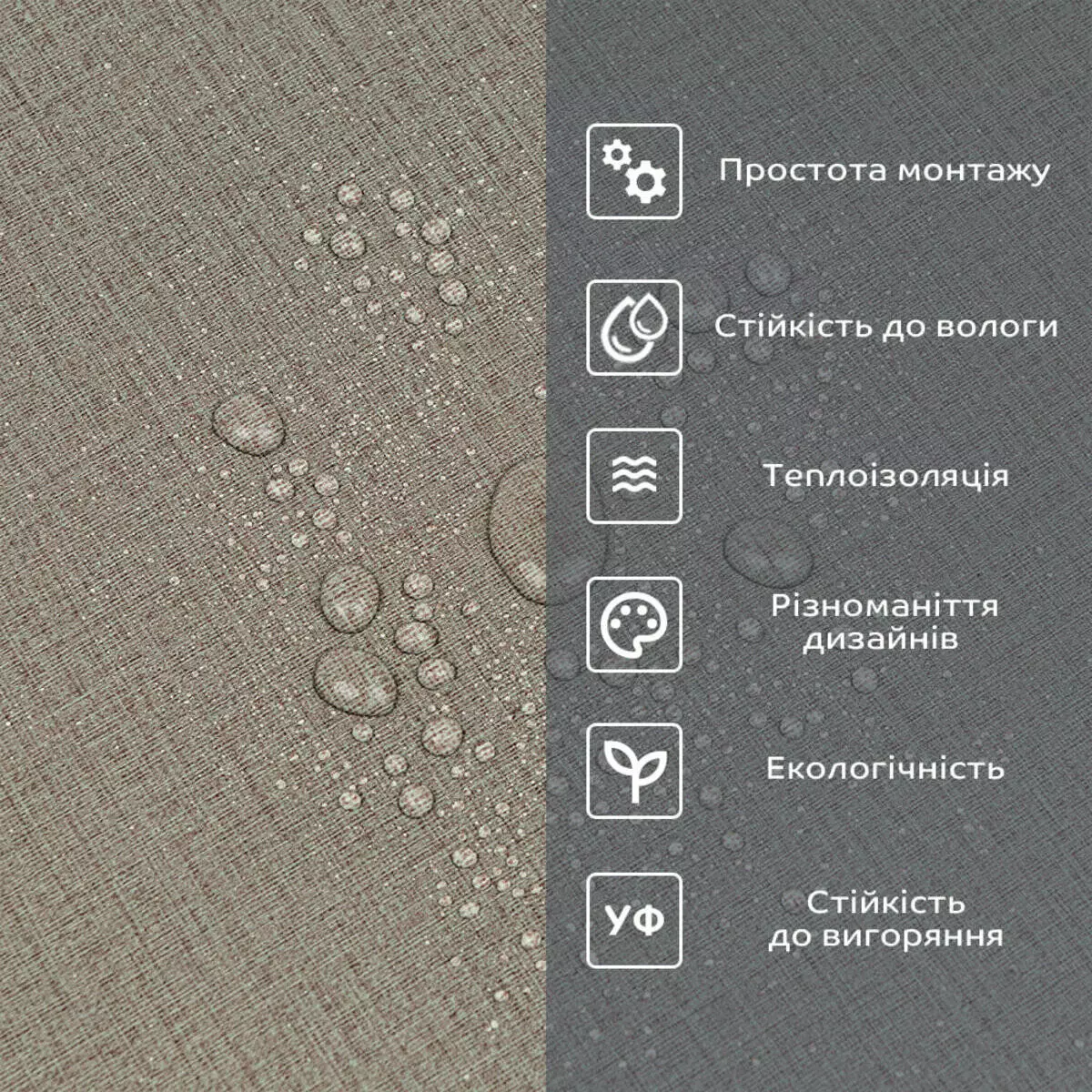 • Легкий догляд: вініл легко очищається і не вимагає спеціальних засобів для чищення.