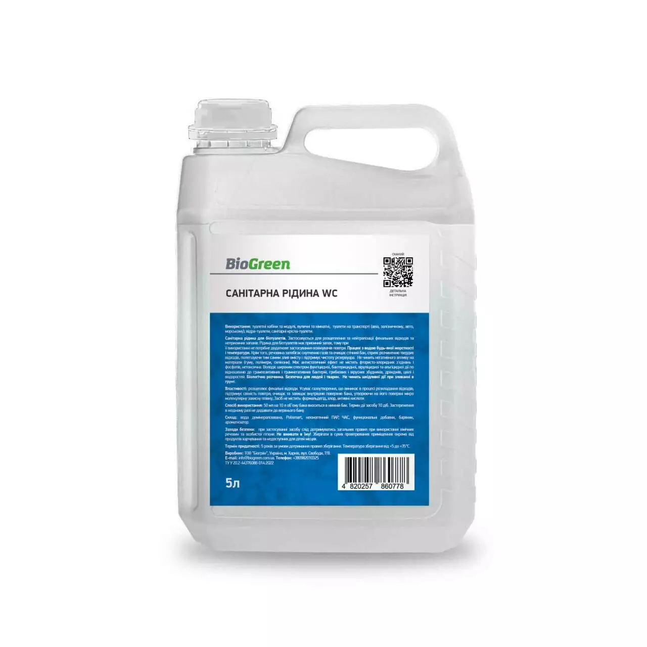 Санітарна рідина для біотуалетів. Застосовується для розщеплення та нейтралізації фекальних відходів та неприємних запахів. Рідина для біотуалетів має приємний запах, тому при