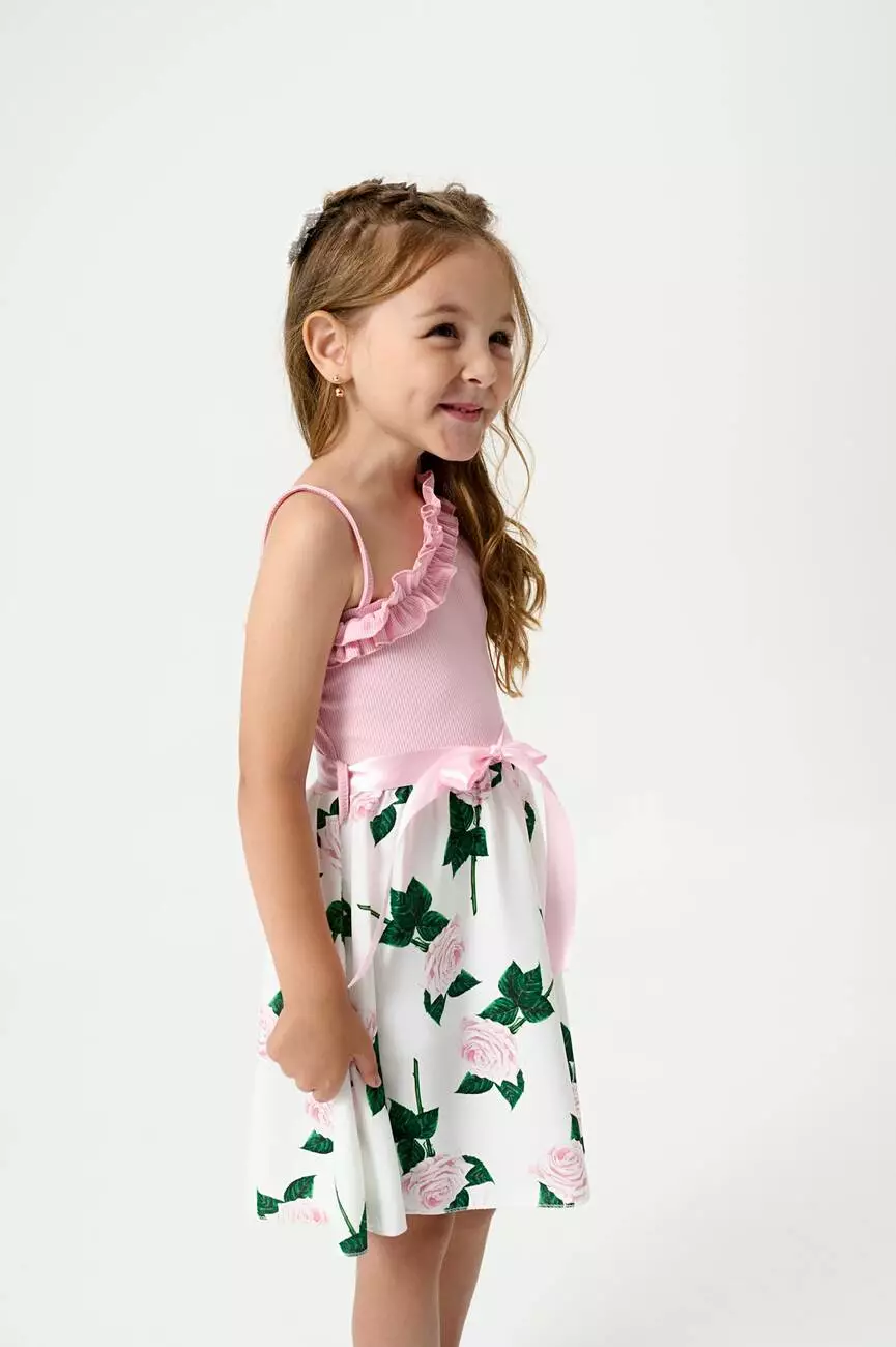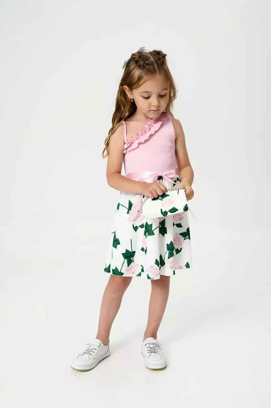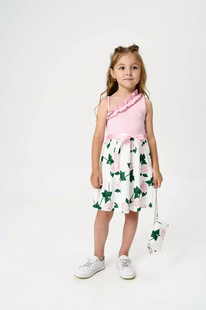 з принтом великих троянд. Довжина сарафану – до колін. У комплекті