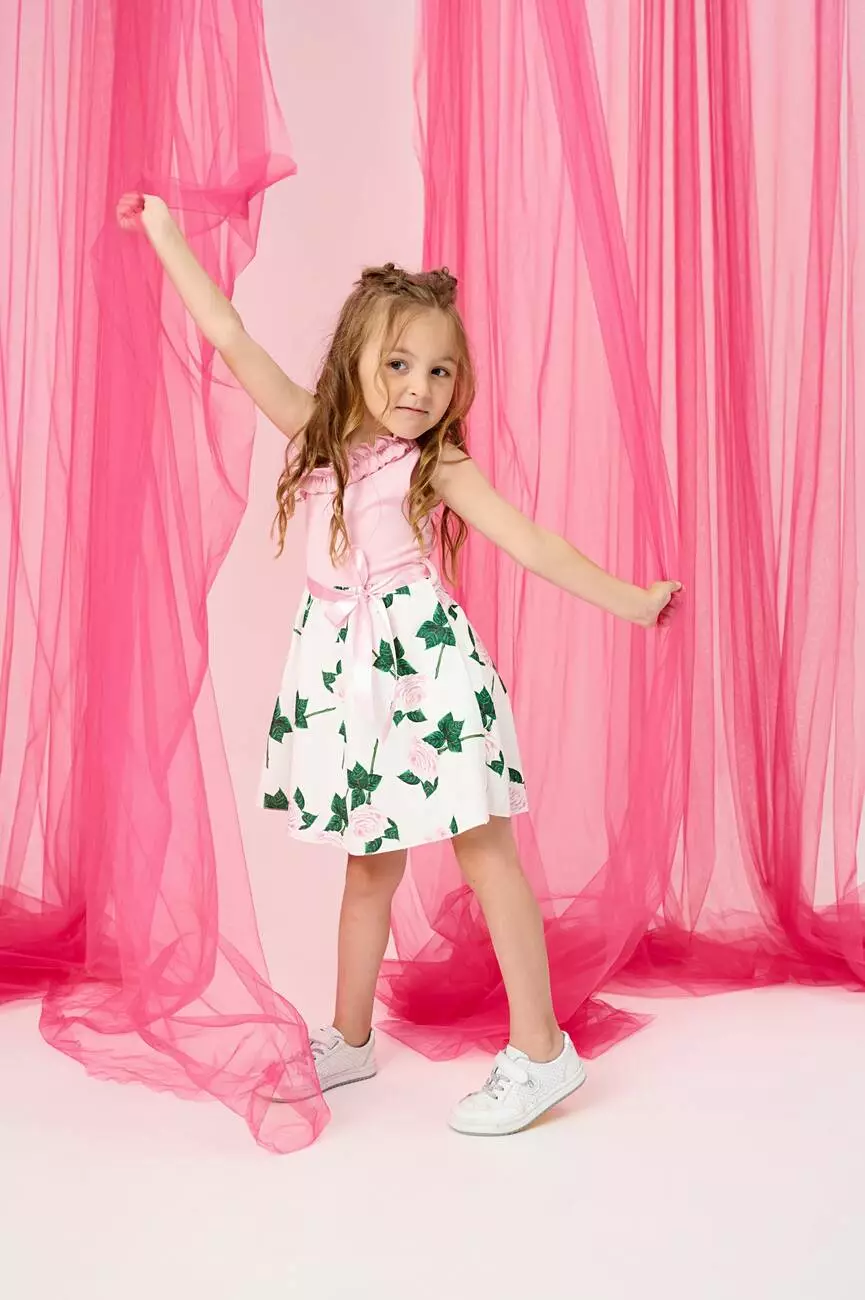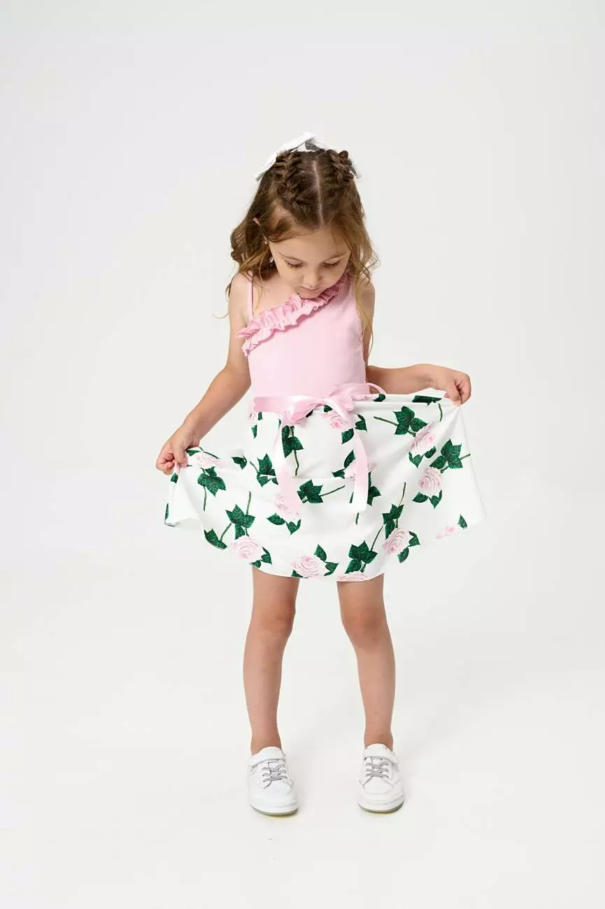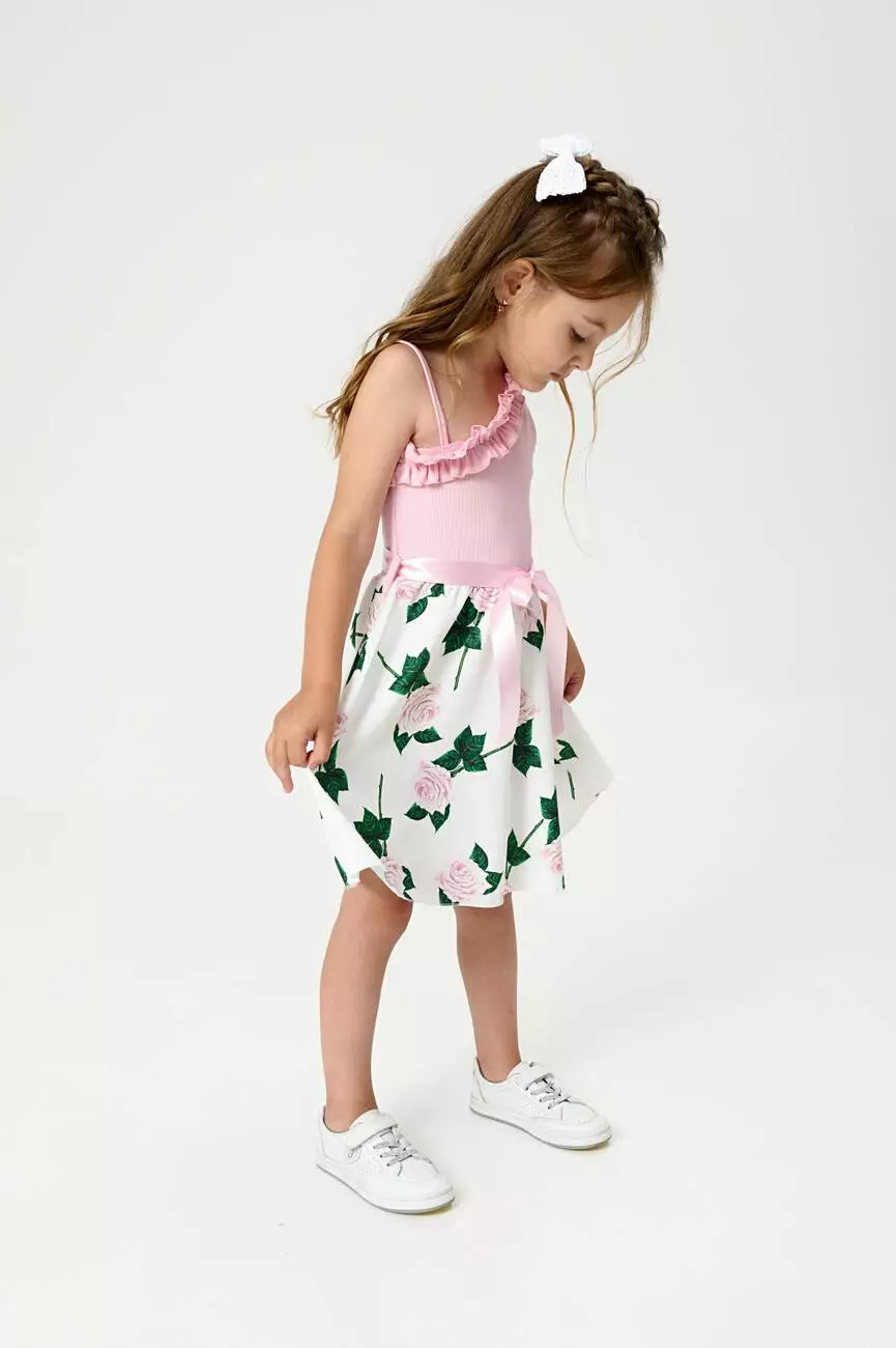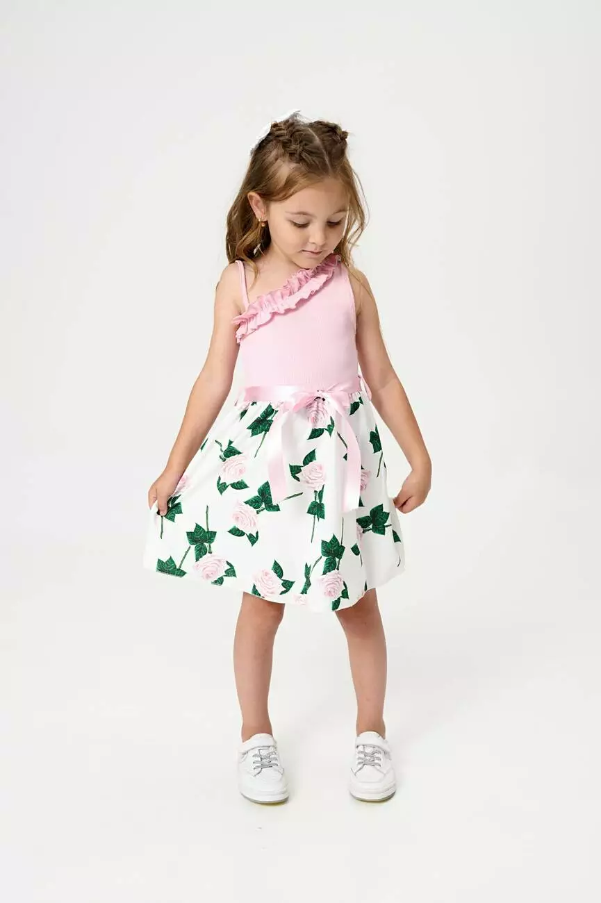 з принтом великих троянд. Довжина сарафану – до колін. У комплекті