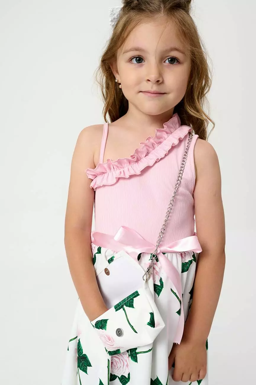 оздоблений атласною стрічкою з бантом. Біла спідниця вільного крою