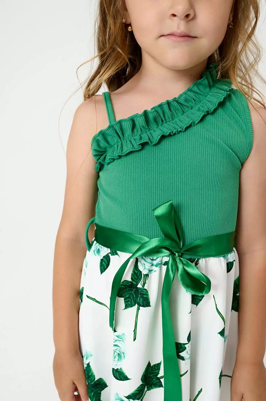 зеленого кольору. Одне відкрите плече. Без застібок. Пояс