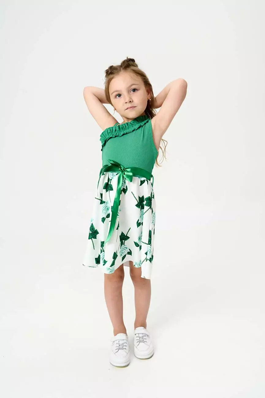з принтом великих троянд. Довжина сарафану – до колін. У комплекті