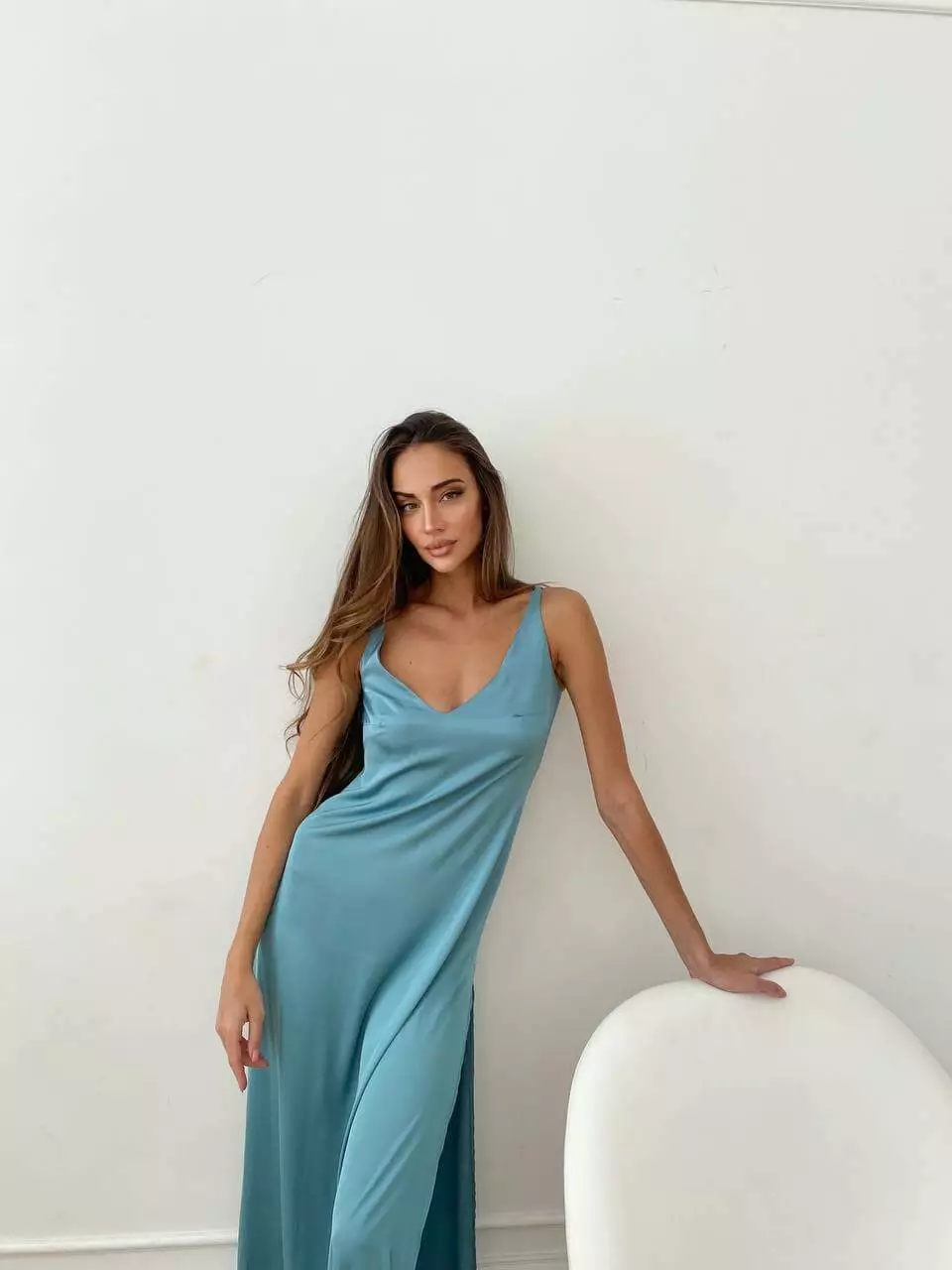 Модель поєднує ніжність шовку та вишуканий V-подібний виріз, та регульовані бретелі підкреслюють жіночність