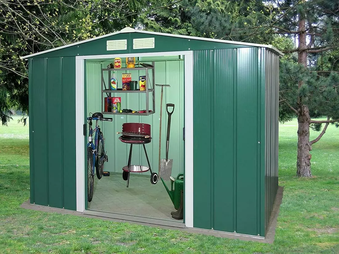 Серія Eco-Metal - ідеальний металевий навіс для економічних «споживачів» без шкоди для довговічності і простору. Деталі рами, стіни і дахи виготовлені з оцинкованої пофарбовані сталі, мають пофарбовану емалеву фарбу, яка буде підтримувати ваш сарай протягом багатьох років. Сарай Eco полегшує зберігання та організацію предметів, таких як обладнання для газону і саду.