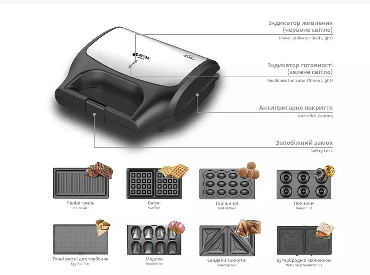 Сендвічниця 1800Вт 8 в 1 BITEK BT-551/ 6710 (4)