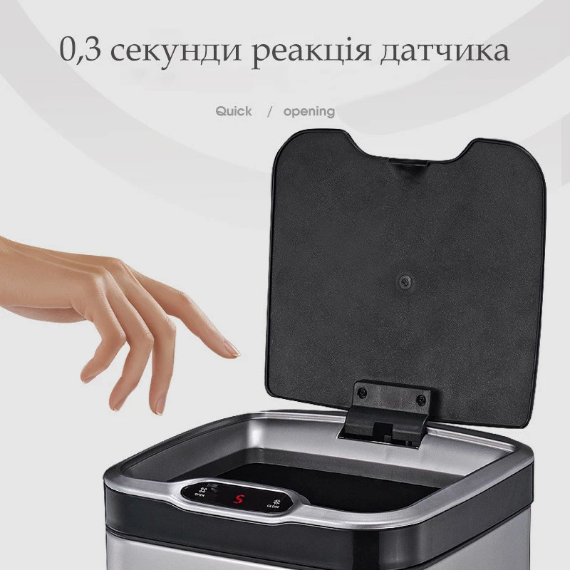 Відро необхідно ставити так, щоб перед передньою панеллю сенсора не було перешкод, щоб уникнути помилкового спрацьовування.