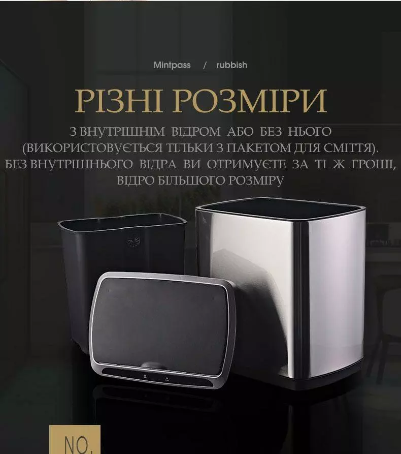 Відро необхідно ставити так, щоб перед передньою панеллю сенсора не було перешкод, щоб уникнути помилкового спрацьовування.