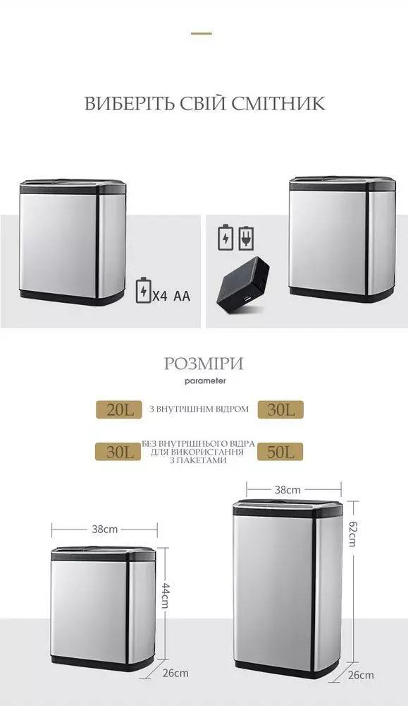 Відро необхідно ставити так, щоб перед передньою панеллю сенсора не було перешкод, щоб уникнути помилкового спрацьовування.