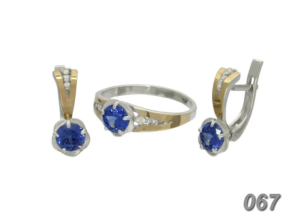 Гарнитур из серебра с золотыми пластинами и фианитами.