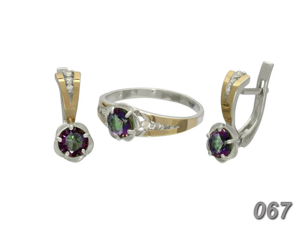 Гарнитур из серебра с золотыми пластинами и фианитами.