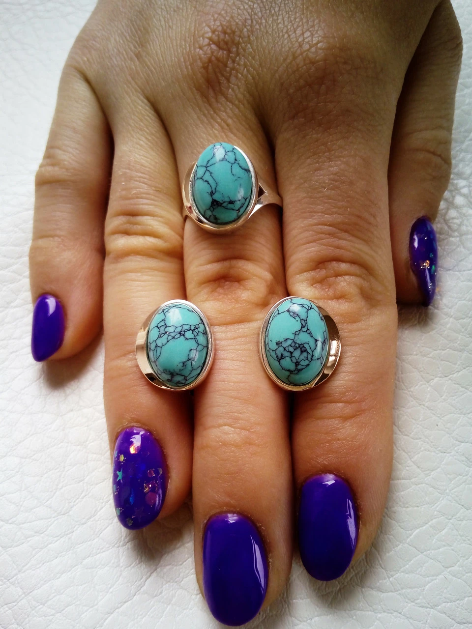 Серебряный набор с золотыми накладками и кабошонами.