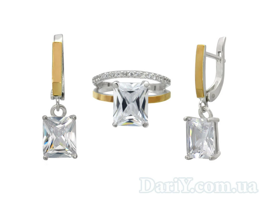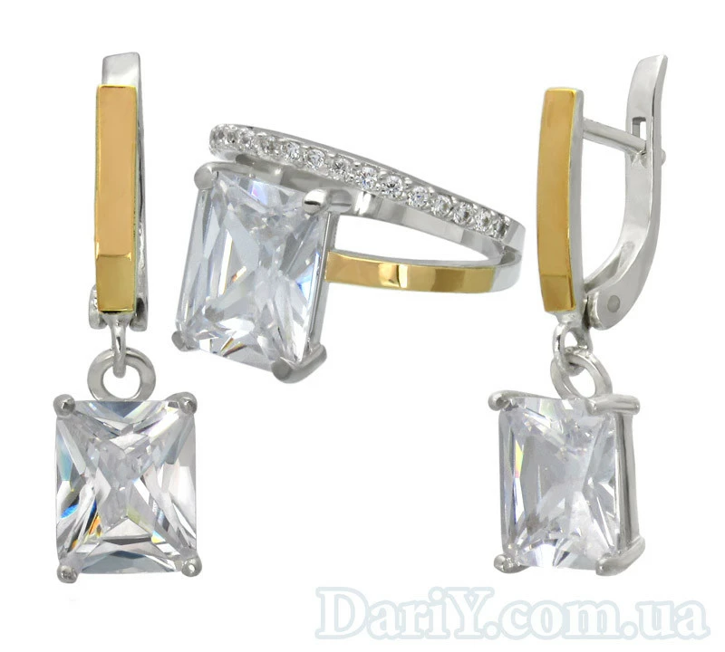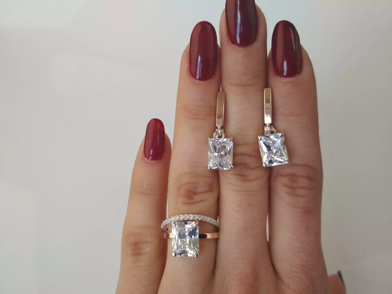 Кольцо и серьги с большим прозрачным прямоугольным камнем