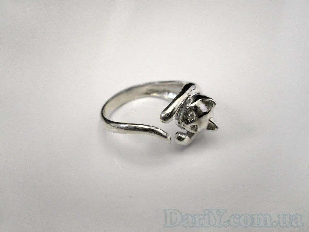 Кольцо в виде кошки из серебра с фианитовыми вставками.