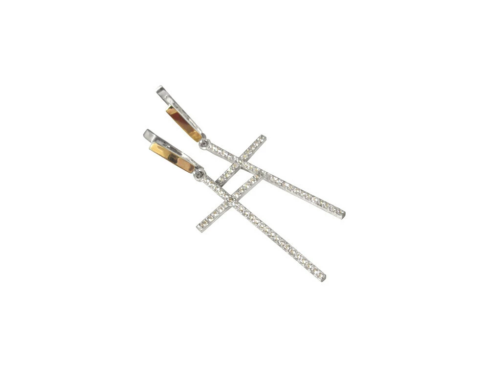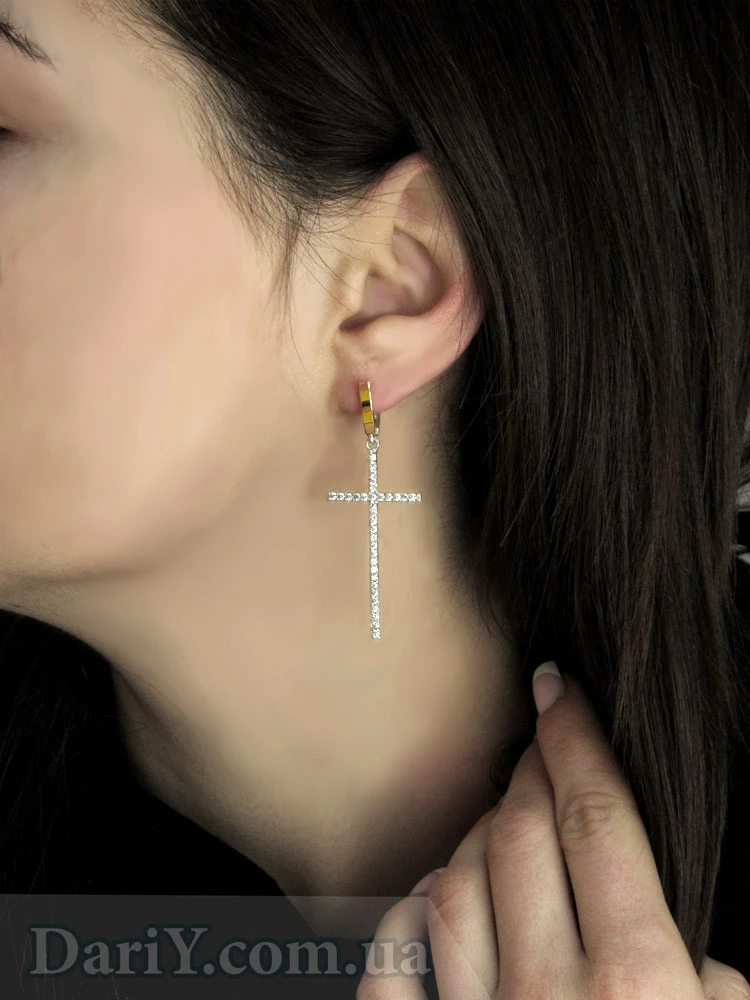 Серьги в форме крестика из серебра с фианитами и золотыми