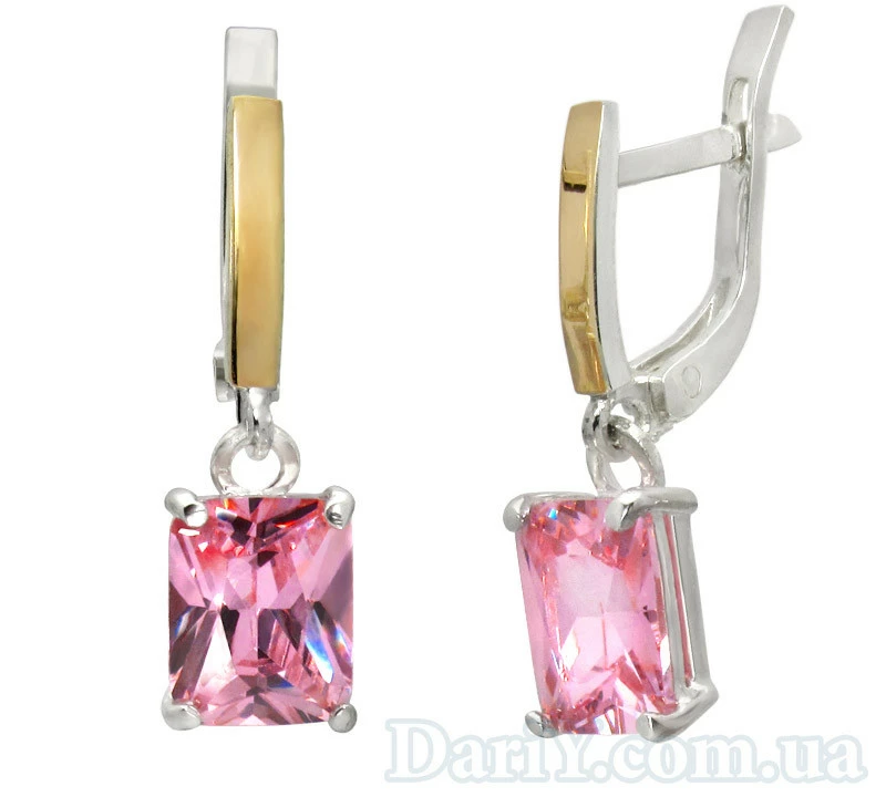 Серьги с большим прямоугольным розовым камнем.