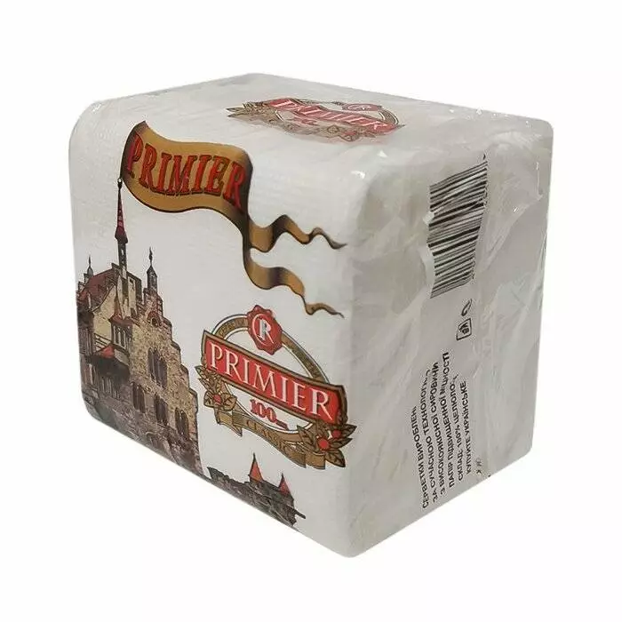 Серветки паперові Primier, одношарові, целюлозні, 240х240 мм.