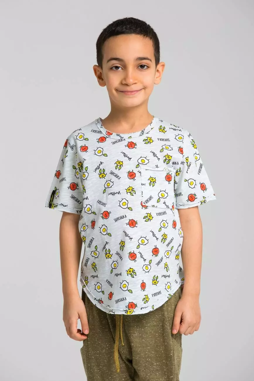 Стильна дитяча футболка з фірмовим принтом і круглою горловиною.