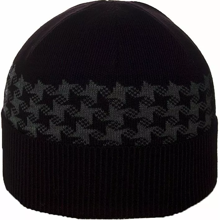 Мужская шапка выполнена в классическом стиле тонкой вязкой -