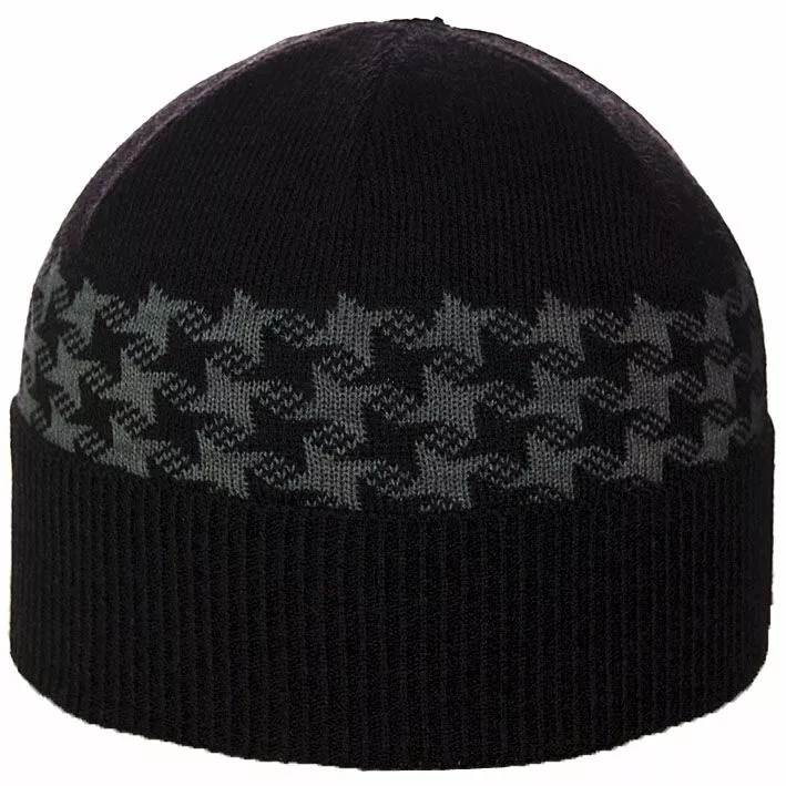Мужская шапка выполнена в классическом стиле тонкой вязкой -