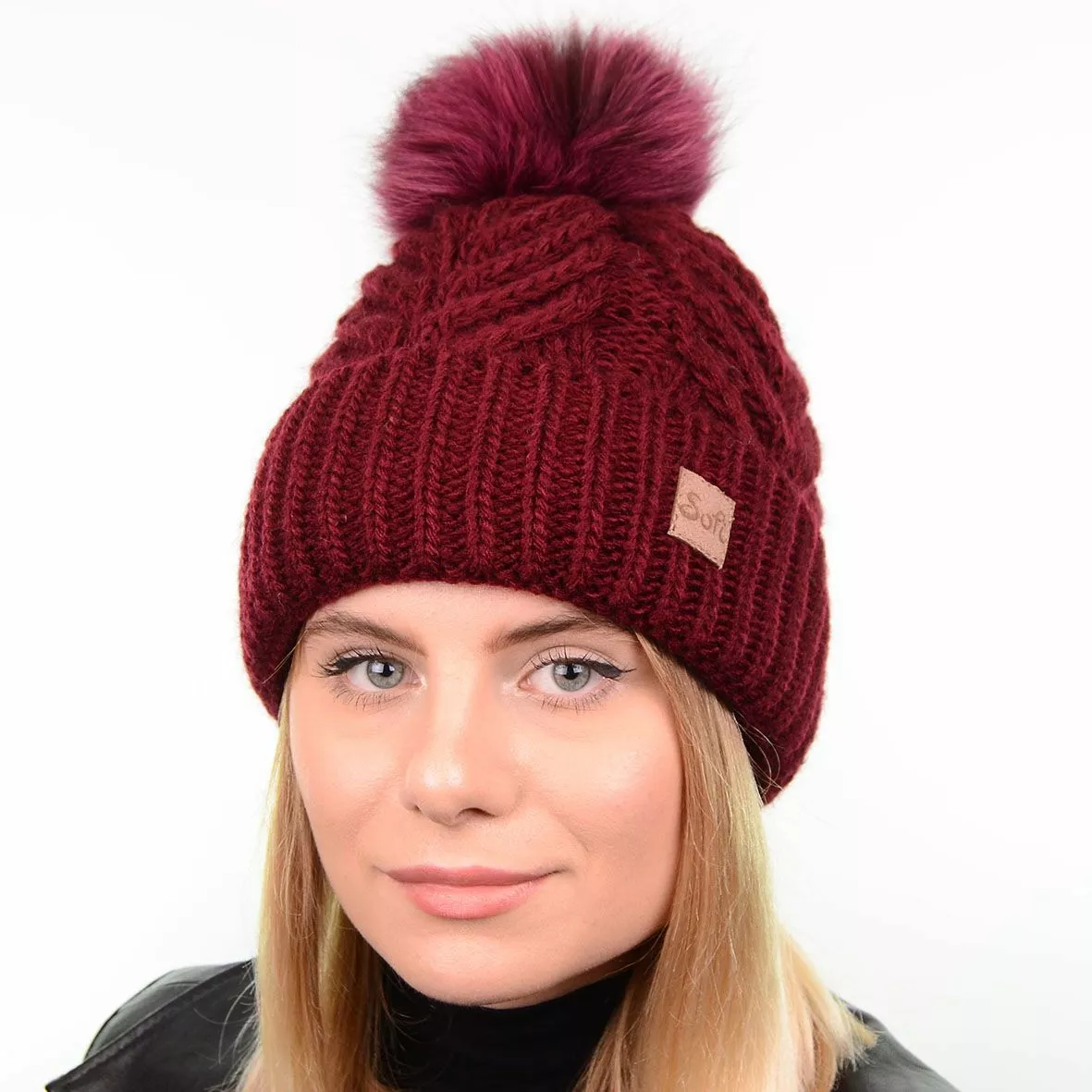 Модная зимняя шапка с натуральным меховым помпоном - смотрится