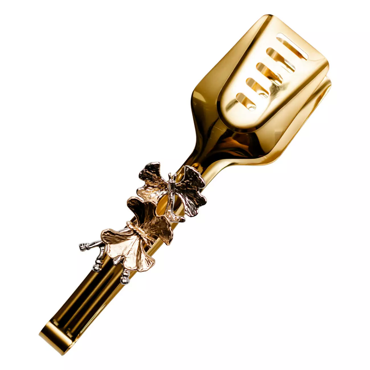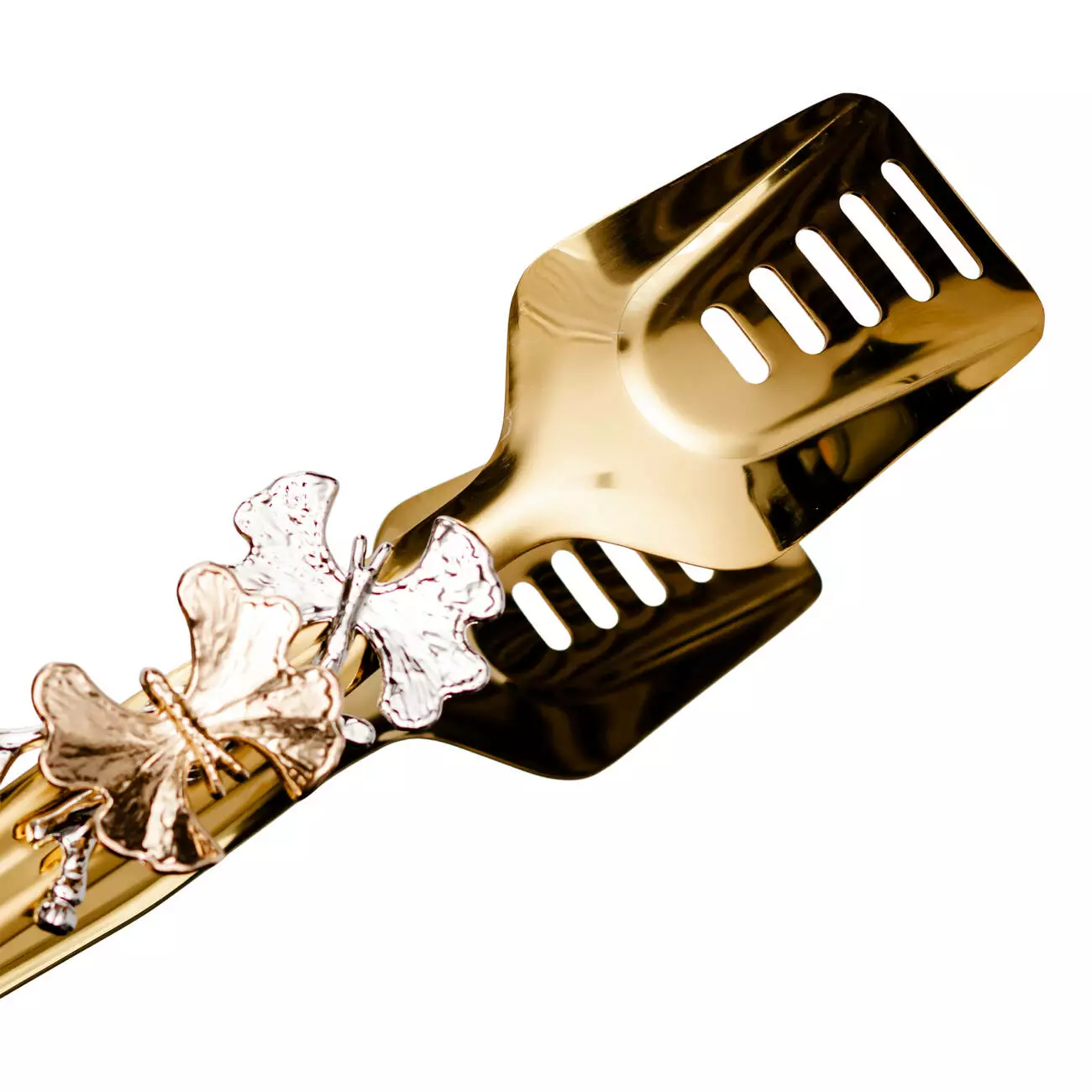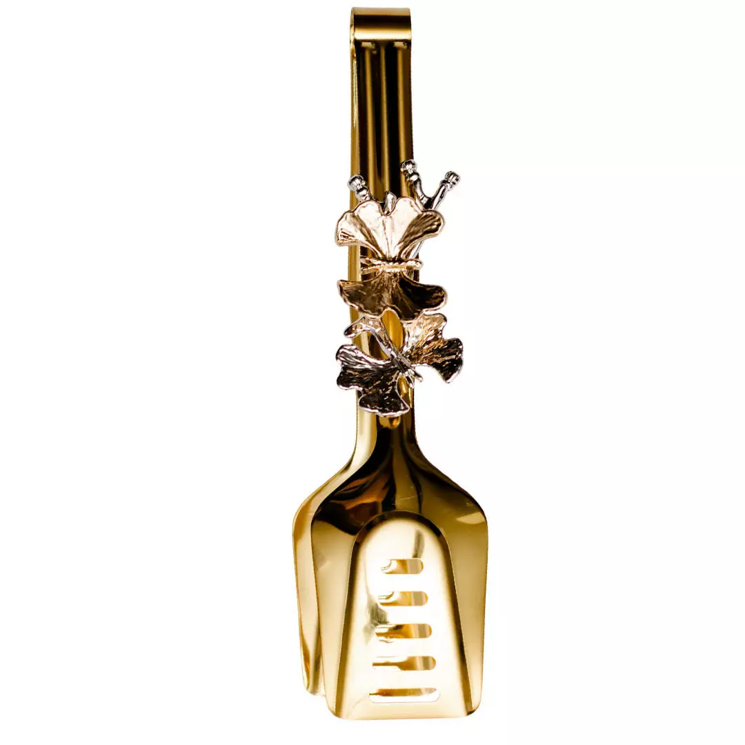 Універсальні сервірувальні щипці з об'ємними декоративними елементами - естетичний та зручний елемент сервірування святкового столу, фуршетів та банкетів. Щипці мають широкі гладкі "губки" з прорізами, що робить їх ідеальним варіантом для подачі салатів із соусом, лазаньї, гарнірів, випічки та хлібців. Прорізи дозволяють стікати зайвої рідини, не деформують страви.