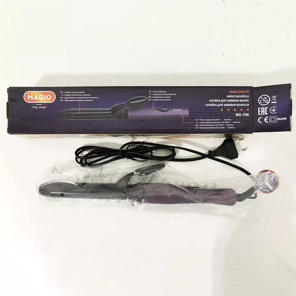 Щипцы для завивки волос MG-706 — прекрасный помощник, с помощью них можно сделать веселые, озорные, сексуальные и упругие кудряшки. Вы можете экспериментировать до бесконечности, создавая удивительные локоны с помощью этих щипцов. Ведь такая прическа, вне зависимости от моды, смотрится выгодно, красиво и уместно. Эта модель оснащена зажимом для фиксации локона, что  дает некое удобство и безопасность. Эти щипцы удобны в использовании, они рекомендованы для самостоятельного использования в стенах родного дома, чего нельзя сказать о других подкатегориях. Щадящая керамическая поверхность нагревается быстро и равномерно, а потому намного бережнее воздействует на поверхность ваших волос. Мощность прибора — 35 Вт, что способствует быстрому нагреву прибора. Щипцы позволят создать крупные, но хорошо подкрученные локоны, а также обрести супер объём у корней. Подставка создает дополнительное удобство при использовании. Ведь когда она есть, рука автоматически опускает на нее плойку, не приходится высматривать место приземления. Время работы  плойки на волосах ограничивается получением желаемого локона, а не тем, куда её поставить.