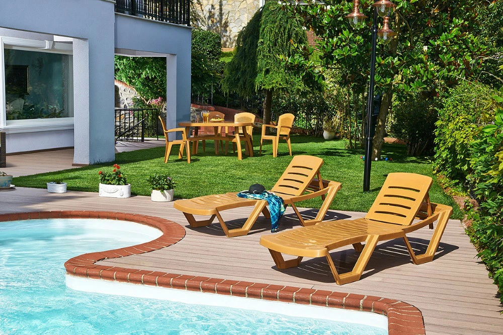 Шезлонг Capissi незамінний при відпочинку на дачі, біля моря або басейну. Поверхня з глянсовою фактурою приємна на дотик і проста в експлуатації. Спинку можна регулювати за допомогою розташованих на зворотному боці шезлонга пазів: вона приймає три положення. Конструкція міцна і стійка, допустиме навантаження до 130 кг. Для зручності переміщення шезлонг оснащений коліщатками. Виготовлений із пластику, стійкого до впливу вологи, УФ-випромінювання, перепадів температури. Штабелюються. Модель добре поєднується зі столиками для шезлонгів Irak Plastik.