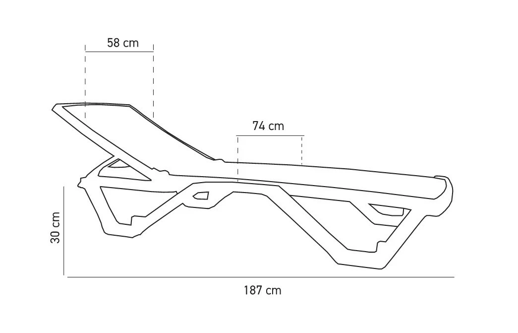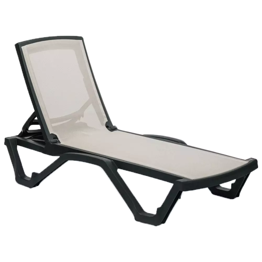 розташованих на зворотному боці шезлонга пазів: вона приймає п'ять