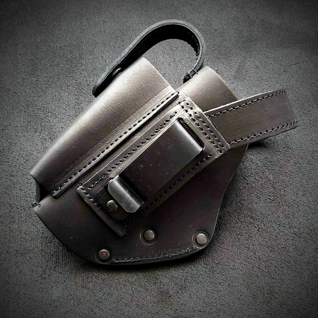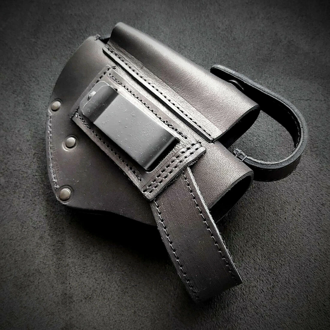 Кобура поясна, виготовлена ​​з щільної натуральної шкіри. Колір чорний