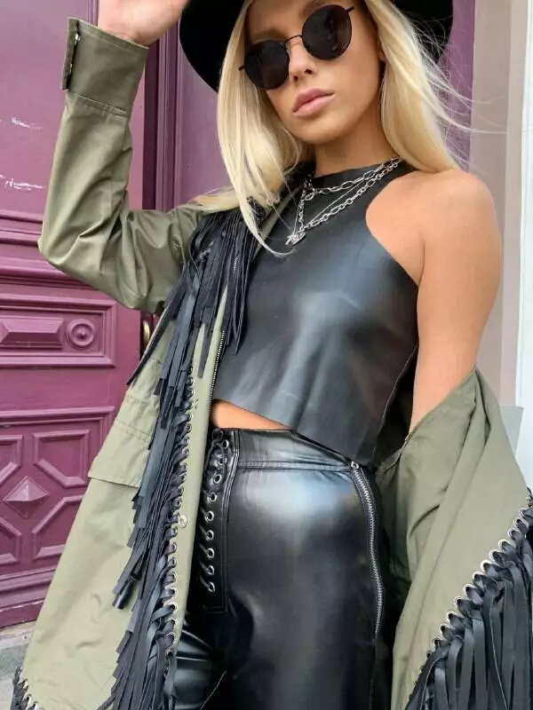 Шкіряний топ колір чорний