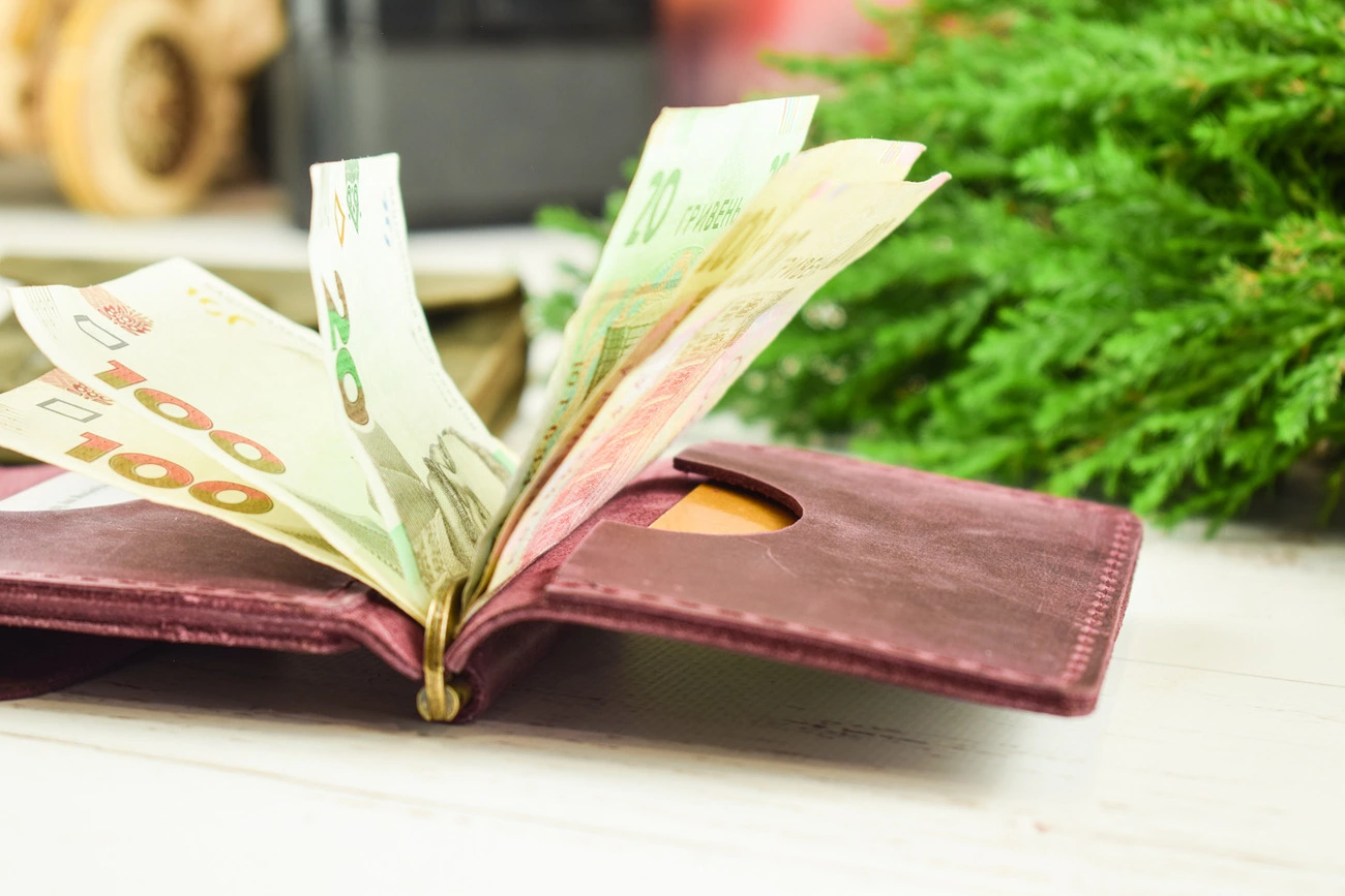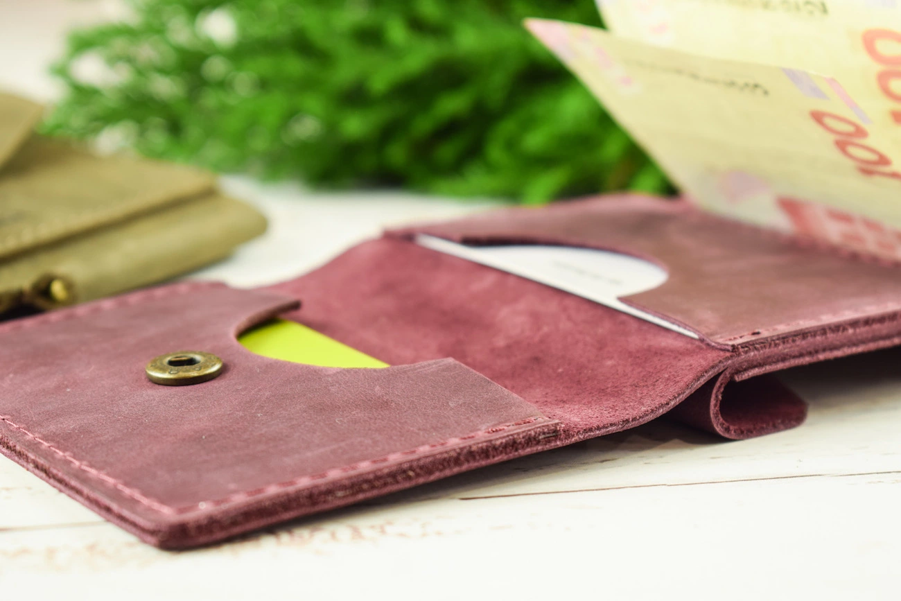 Шкіряний затиск для грошей. Усередині металевий затиск для