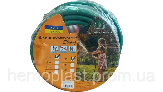Шланг для поливу садовий STRONG ПВХ одношаровий 30 метрів 16мм*2мм 5/8 Гемопласт