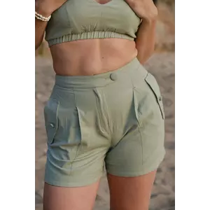 Ідеальні літні шорти в неймовірному фісташковому кольорі. Мають функціональні кишені та застібку на ґудзик.