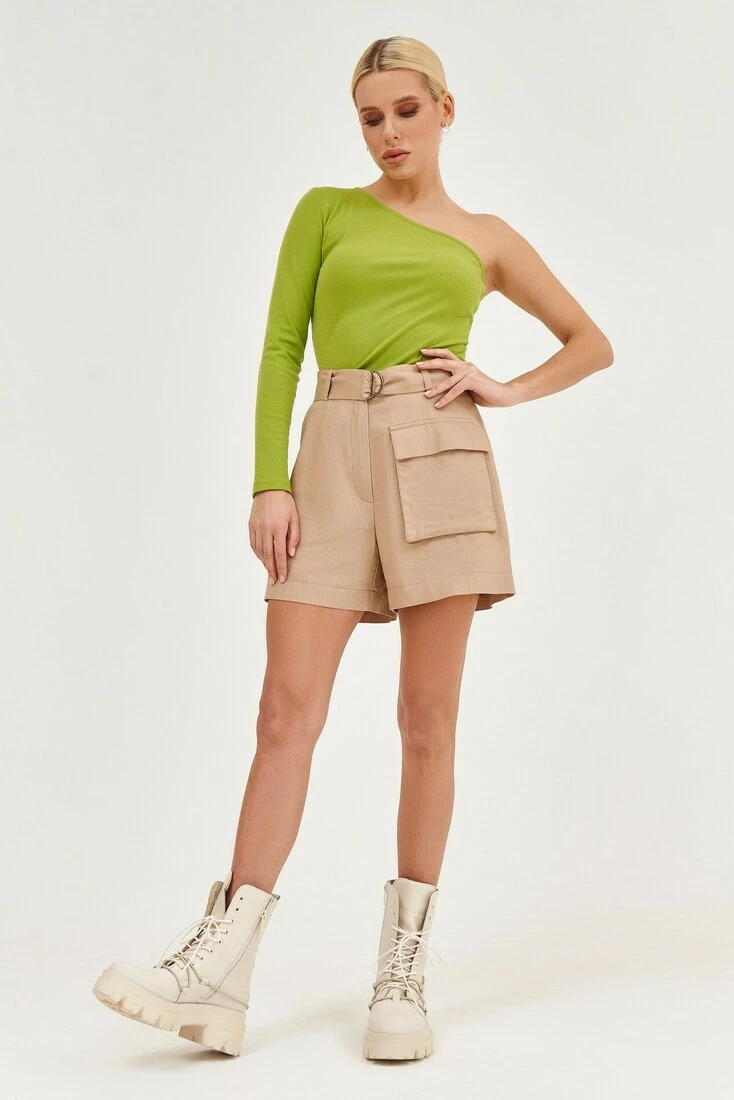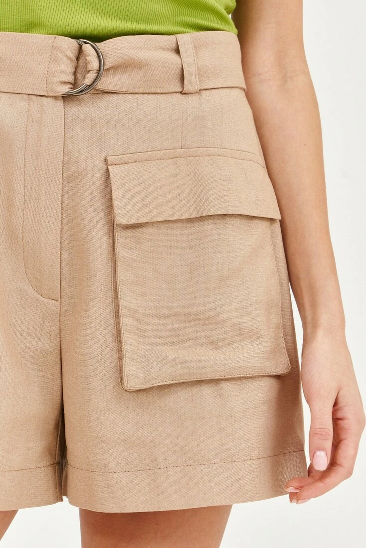 Ці шорти — справжня знахідка для прихильниць комфорту та стилю. Виготовлені з натурального льону, забезпечують неперевершену м'якість і легкість, що робить їх ідеальним вибором для спекотних літніх днів. Накладна кишеня додає шортам родзинку та дозволяє зберігати важливі дрібниці завжди під рукою. Колір лате — це універсальний відтінок, який пасує практично для будь-якого образу і ситуації. Шорти чудово поєднуються як з топами і майками, так і з блузами і сорочками, що дає змогу створювати різноманітні та стильні комплекти. Крім того, висока якість матеріалу та бездоганне виконання гарантують довговічність і надійність цих шортів. У цих шортах матимете модний, комфортний та оригінальний вигляд.