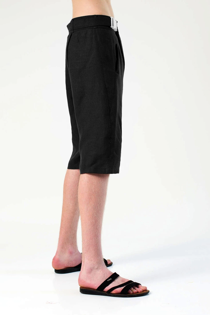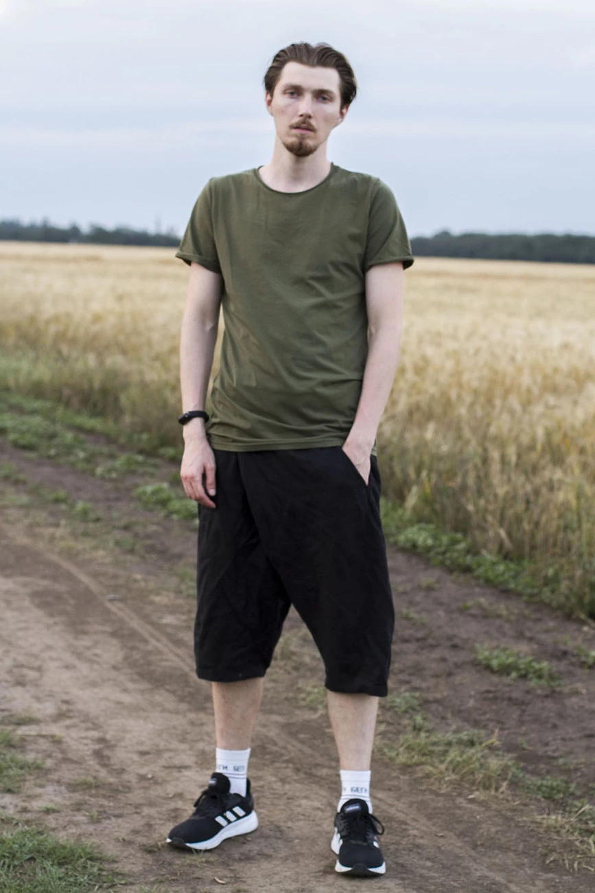 Свободная модель унисекс, средняя посадка, длина до колена, 2 боковых кармана, фиксируются поясом