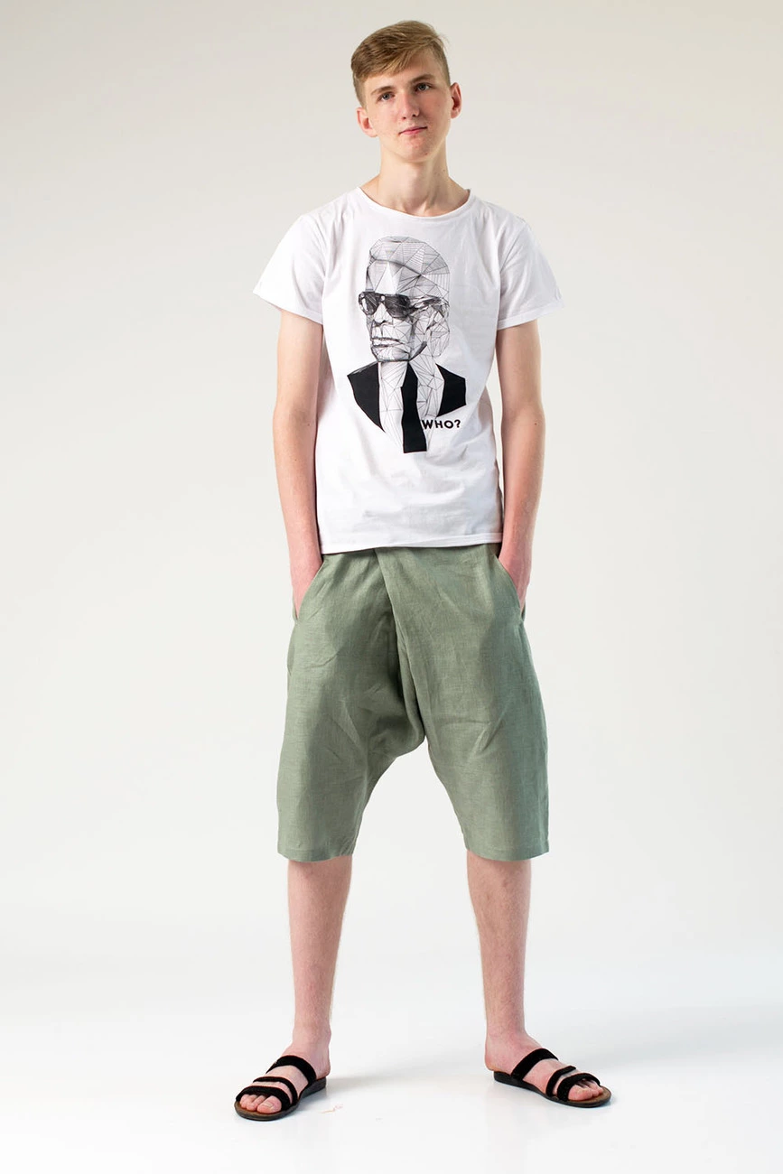 С карманами, унисекс. Состав: 100% лен. Размеры:S, M, L, XL.