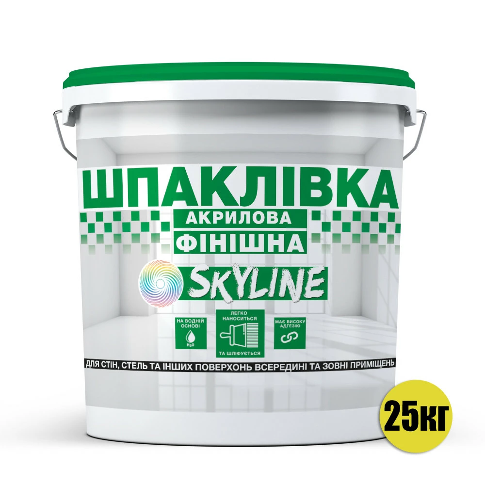 Шпаклевка акриловая финишная SkyLine предназначена для выполнения окончательной тонкослойной высококачественной отделки стен, потолков и других различных видов поверхностей внутри и снаружи помещений. Рекомендуется для отделки фасадов и интерьеров с созданием различных фактур. Шпаклевка легко наносится и шлифуется, быстро сохнет. Не желтеет. Имеет отличную адгезию к различным типам основ. Не содержит органических растворителей. Значительно уменьшает расход лакокрасочных материалов, которые наносятся после шпаклевания. Без запаха.