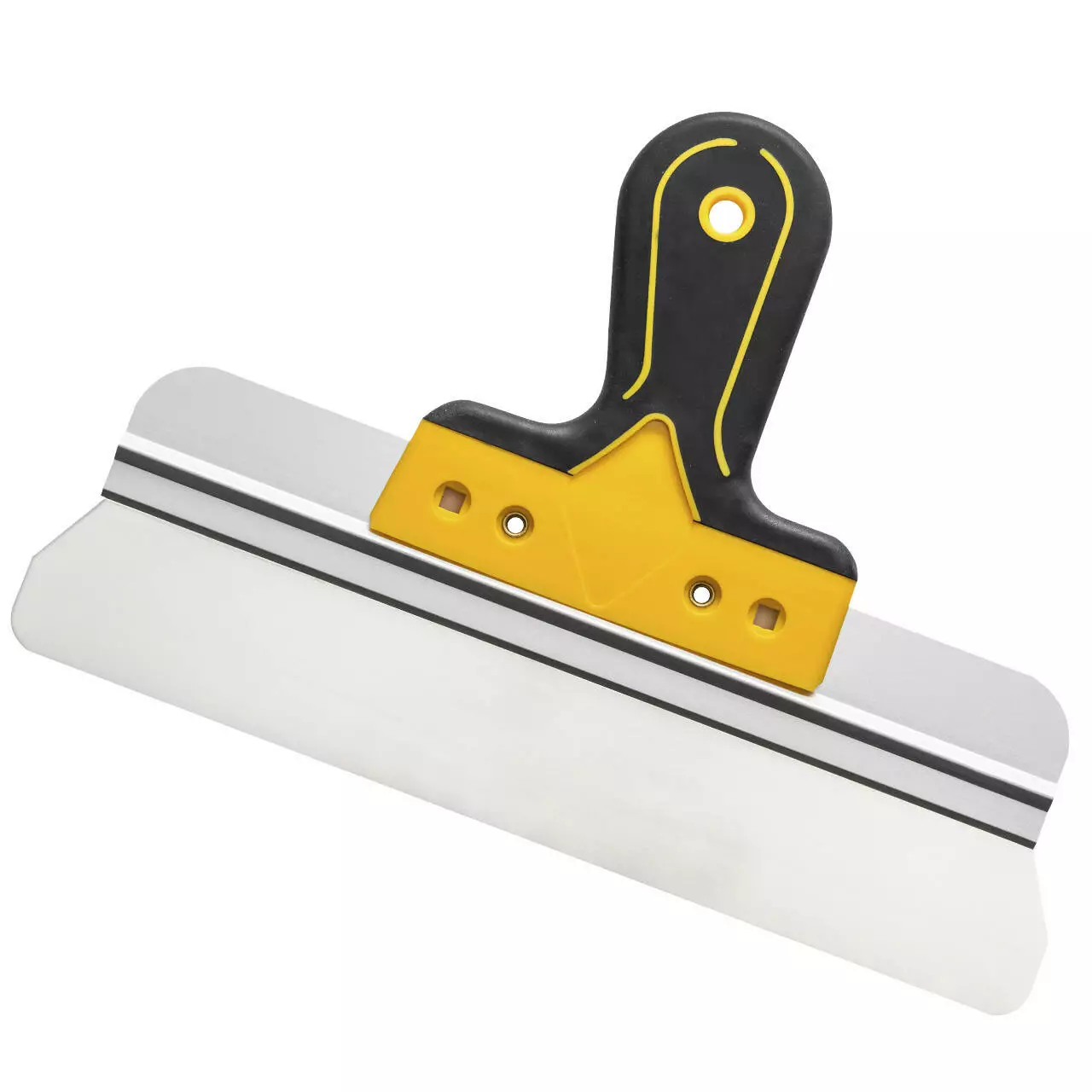 Лезвие шпателя выполнено из нержавеющей стали с толщиной 0,4 мм и закреплено в прочном алюминиевом профиле, что обеспечивает высокую прочность и долговечность инструмента. Эргономичная двухкомпонентная ручка снижает утомляемость и повышает комфорт при длительной работе, а также оснащена отверстием для удобного подвешивания и хранения. Выбор ширины шпателя зависит от площади обрабатываемой поверхности, что позволяет подобрать оптимальный инструмент для каждого типа работы.