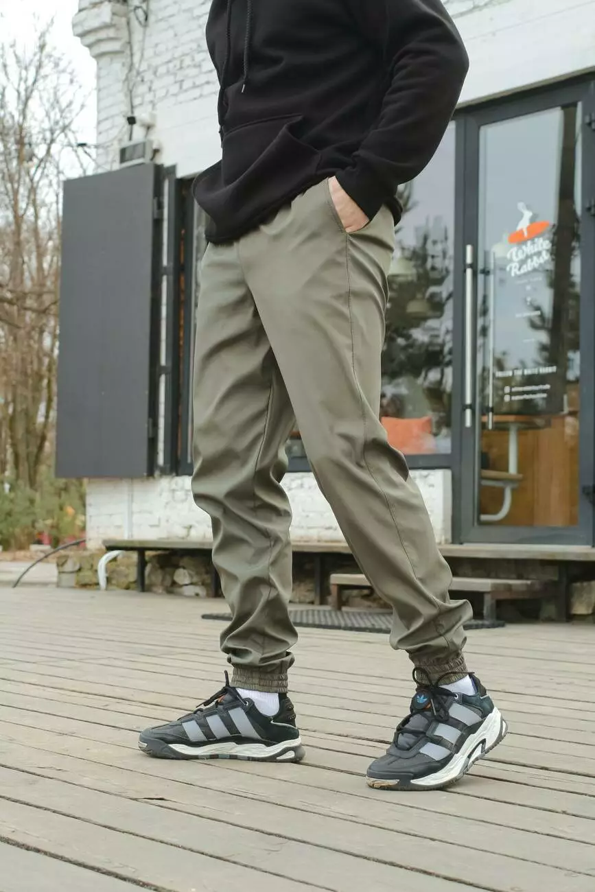 - Внизу штани фіксуються за допомогою еластичних манжетів.