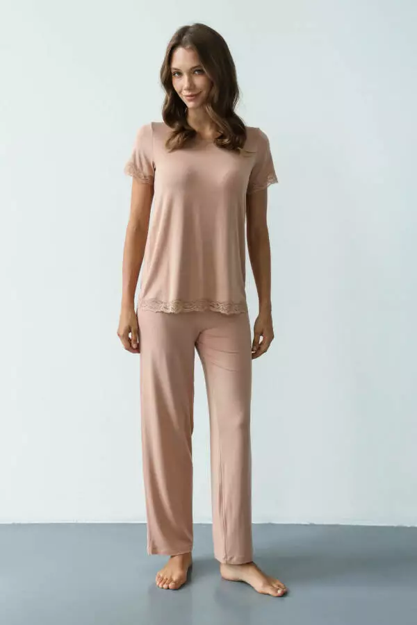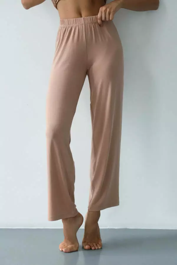 Бежевий колір – це класика, яка підходить для будь-якого стилю. Він додає образу спокою, легкості та елегантності, роблячи штани ідеальним вибором для тих, хто цінує витонченість навіть у домашньому гардеробі. Бежевий – універсальний відтінок, який підходить для будь-якого типу шкіри, додаючи образу природності та гармонії. Цей колір дарує відчуття спокою та затишку, що робить його особливо доречним для домашнього одягу, коли хочеться розслабитися та відпочити.