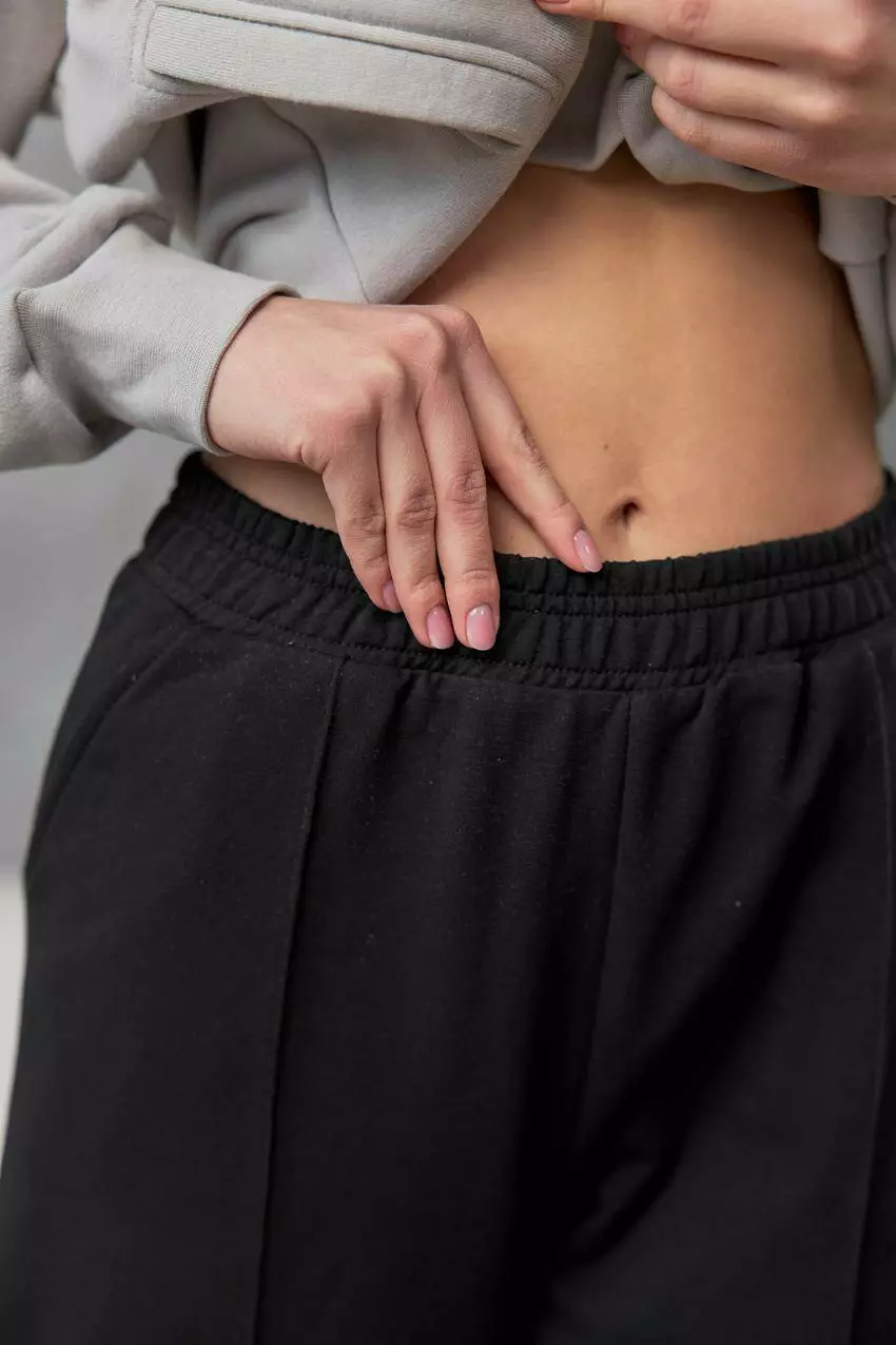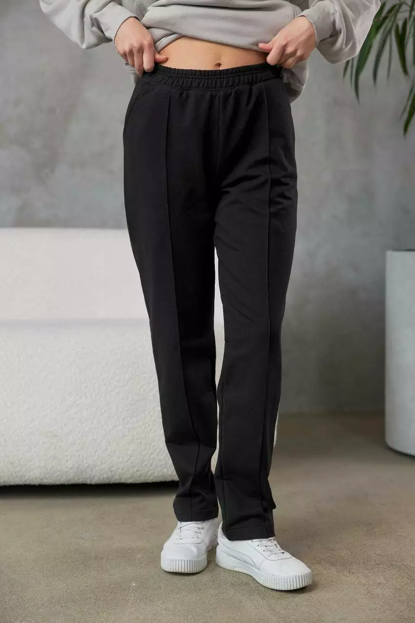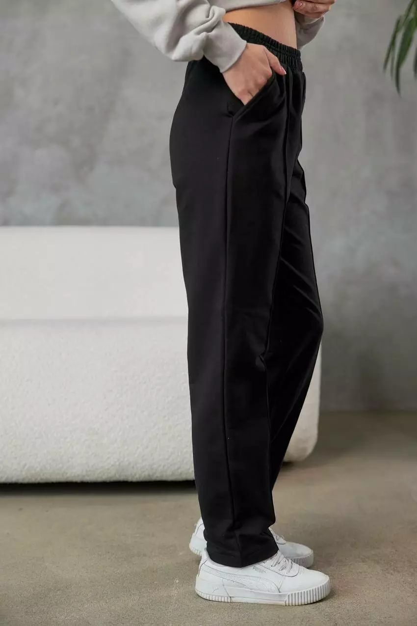 Жіночі штани з двонитки з кишенями та відстрочкою — поєднання